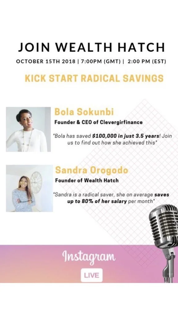 Financial literacy is incredibly important. I don’t know about you but I am always looking for ways to secure the bag. If you are the same then this event is for you! Join founder of the Wealth Hatch Sandra, who transformed her credit score and drastically increased her savings in a short amount of time and Bola, who managed to save $100,000 in 3 and a half years! This event is going to be held on ‘Instagram Live’ there is no excuse for you to not tune in, so 7pm, 15 October, I want to see your Instagram username pop up in the Live!