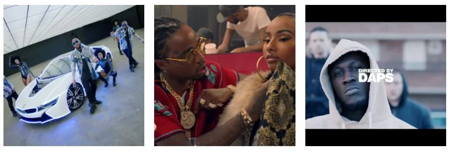 Left to Right: Davido, Like Dat, Migos ft Lil Uzi Vert, Bad and Boujee and Stormzy Big for your Boots, YouTube